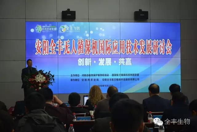 為了促進中國無人植保機與世界接軌,推動航空植保行業(yè)邁上更高的臺階,2016年10月25日,安陽全豐無人植保機國際應(yīng)用技術(shù)發(fā)展研討會在全豐多功能會議廳成功舉行。