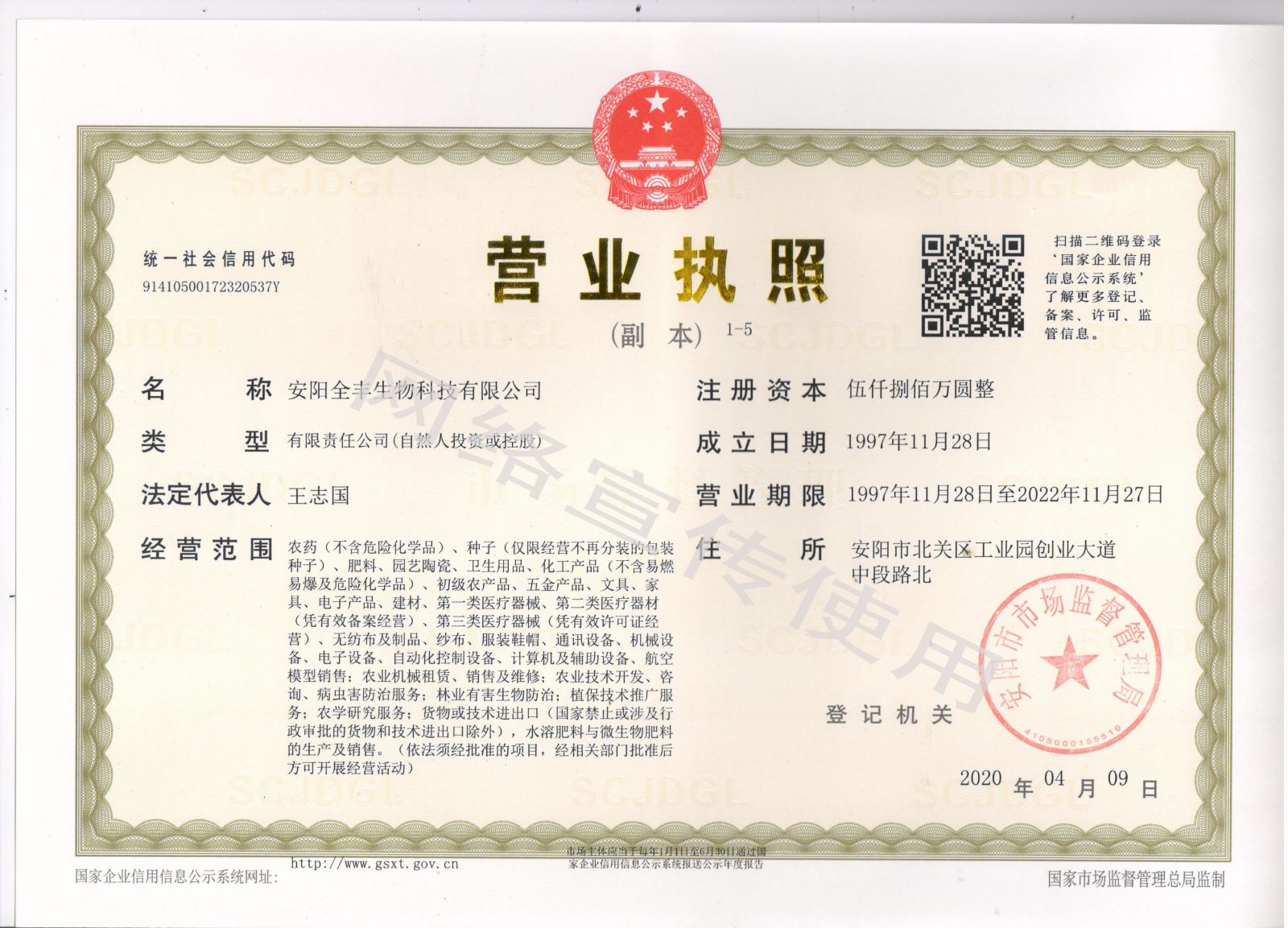 安陽全豐生物科技有限公司營業(yè)執(zhí)照