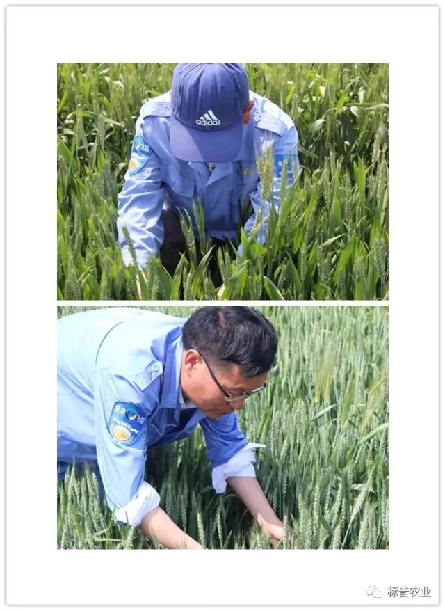 藥劑督察組的第一站來(lái)到作業(yè)點(diǎn)隆化村,組員們頂著烈日進(jìn)入田地調(diào)查病害,首先通過全豐無(wú)人機(jī)遙感技術(shù)對(duì)小麥病蟲害進(jìn)行了遙感定量監(jiān)測(cè),發(fā)現(xiàn)這里是蚜蟲病害發(fā)生初期,還有條銹病和赤霉病。