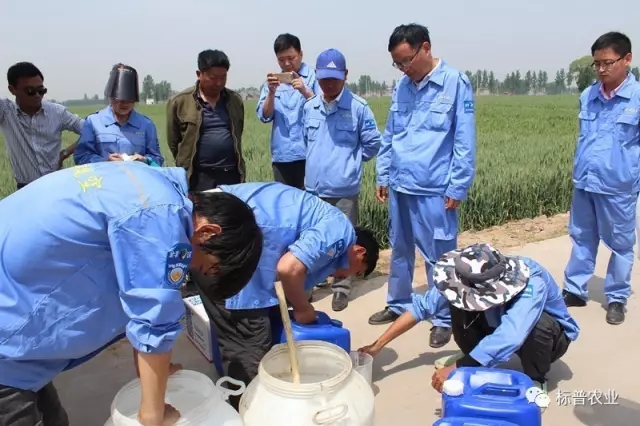 藥劑督察組是流動(dòng)的工作狀態(tài),來(lái)到第二個(gè)作業(yè)點(diǎn),飛機(jī)正在等藥,小組成員們直接下地勘察病情,烈日下,大家沒有一個(gè)人叫苦叫累。一番調(diào)查之后發(fā)現(xiàn)這里的小麥病情較輕,但是也有條銹病和赤霉病的發(fā)生。當(dāng)老鄉(xiāng)把水和藥品拉到作業(yè)現(xiàn)場(chǎng),督察組嚴(yán)格按照作業(yè)標(biāo)準(zhǔn)監(jiān)督作業(yè)小組配藥,并對(duì)作業(yè)過程中不標(biāo)準(zhǔn)的地方提出指導(dǎo),督察小組的意義是不能因?yàn)橐晃兜淖非笞鳂I(yè)效率而忽略質(zhì)量,工作就是相鋪相成的。