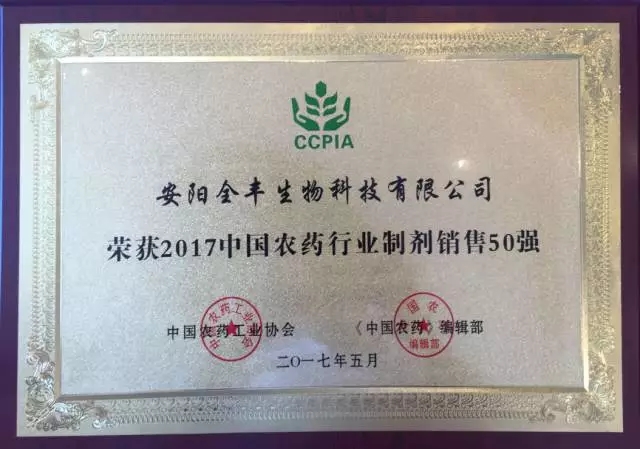 第四屆農(nóng)藥行業(yè)經(jīng)濟(jì)運(yùn)行分析會(huì)暨農(nóng)藥行業(yè)排行榜發(fā)布會(huì)-安陽全豐榮獲制劑銷售50強(qiáng)