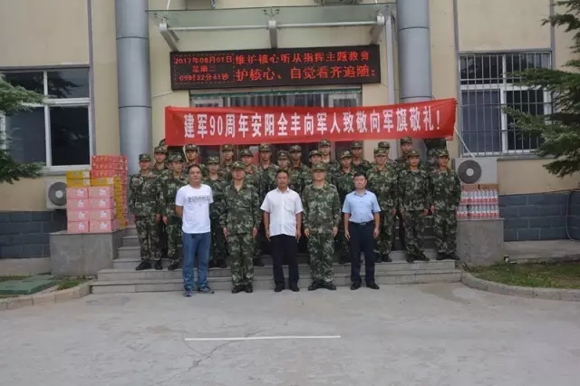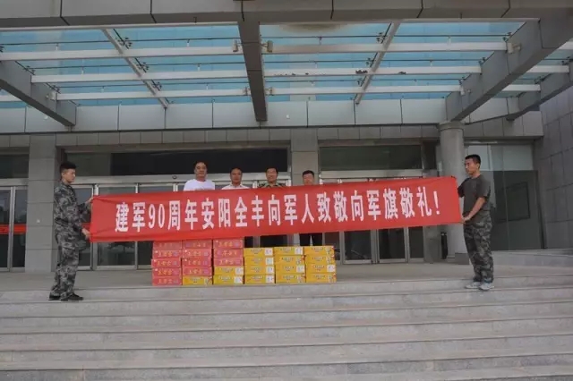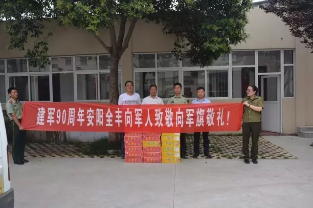 中國人民解放軍建軍90周年,2017年8月1日,安陽全豐生物科技有限公司副總經(jīng)理楊紅軍,全豐航空植??萍脊煞萦邢薰靖笨偨?jīng)理、安陽太行低空空間應(yīng)用職業(yè)培訓學校校長陳磊,綜合辦副主任張志剛一行受全豐公司董事長兼總經(jīng)理王志國的委托,帶著對駐安子弟兵的深情厚誼到北關(guān)區(qū)武裝部、安陽市看守所、安陽市武警消防中隊看望慰問部隊官兵,向他們致以節(jié)日的問候和美好的祝福,并送去了慰問物品,受到官兵們的熱烈歡迎!