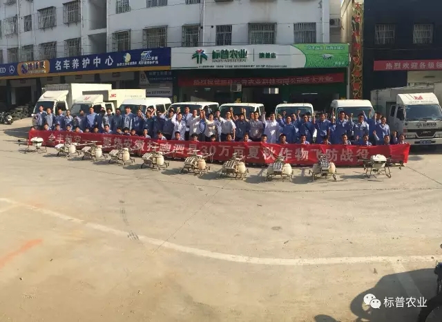 此次飛防是繼安陽(yáng)百萬(wàn)畝統(tǒng)防統(tǒng)治后的又一大規(guī)模作業(yè)。為了順利完成任務(wù),8月15日,標(biāo)普農(nóng)業(yè)總部飛防大隊(duì)和全國(guó)各地標(biāo)普分公司飛防隊(duì)出動(dòng)全豐植保無(wú)人機(jī)120余架,飛手及助手等近300人奔赴泗縣,要和病蟲(chóng)害打一場(chǎng)徹底的殲滅戰(zhàn)。