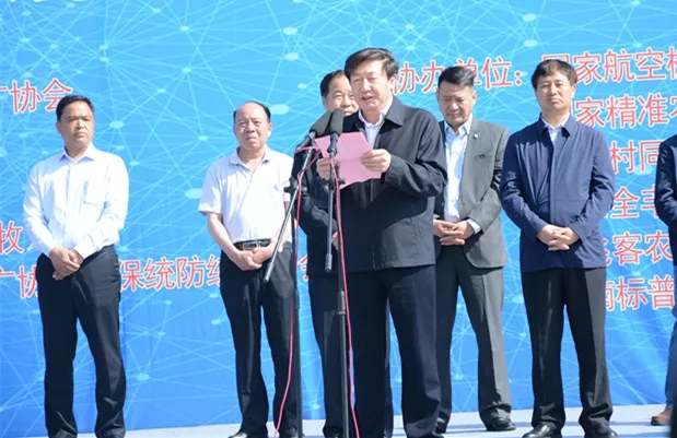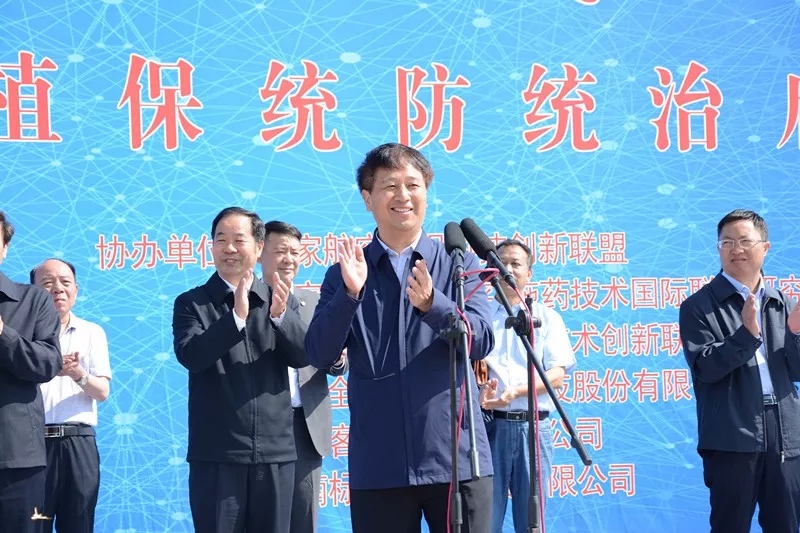 中國農(nóng)技推廣協(xié)會植保統(tǒng)防統(tǒng)治分會會長、安陽全豐董事長王志國在大會上做了重要演講,他講到航空植保省工、省水、適應(yīng)性強(qiáng)、突擊能力強(qiáng),是農(nóng)作物病蟲害統(tǒng)防統(tǒng)治的重要手段。經(jīng)過近幾年的發(fā)展,航空植保迎來了大發(fā)展,今天大家共同見證了植保無人機(jī)亮劍于小麥200萬畝統(tǒng)防統(tǒng)治作業(yè),相信未來不久,航空植保必將成為大面積農(nóng)作物病蟲害防治的重要力量。他指出作為中國農(nóng)技推廣協(xié)會植保統(tǒng)防統(tǒng)治分會會長單位,我們深感責(zé)任重大,使命艱巨,并承諾將以“科學(xué)植保、高效植保、綠色植?!睘槔砟?,自覺維護(hù)行業(yè)利益、強(qiáng)化行業(yè)自律,與各位同仁一起把航空植保發(fā)展成為綠色農(nóng)業(yè)、生態(tài)農(nóng)業(yè)的重要支撐。同時他還承諾作為安陽200萬畝小麥統(tǒng)防統(tǒng)治的實(shí)施單位,在作業(yè)的過程中,將嚴(yán)格標(biāo)準(zhǔn)、規(guī)范操作、確保安全、注重實(shí)效,把此次的統(tǒng)防統(tǒng)治作業(yè)打造成植保無人機(jī)智能化、信息化、科學(xué)化水平的農(nóng)民信得過的品牌,成為航空植保史上新的里程碑。