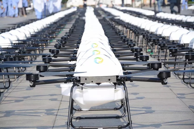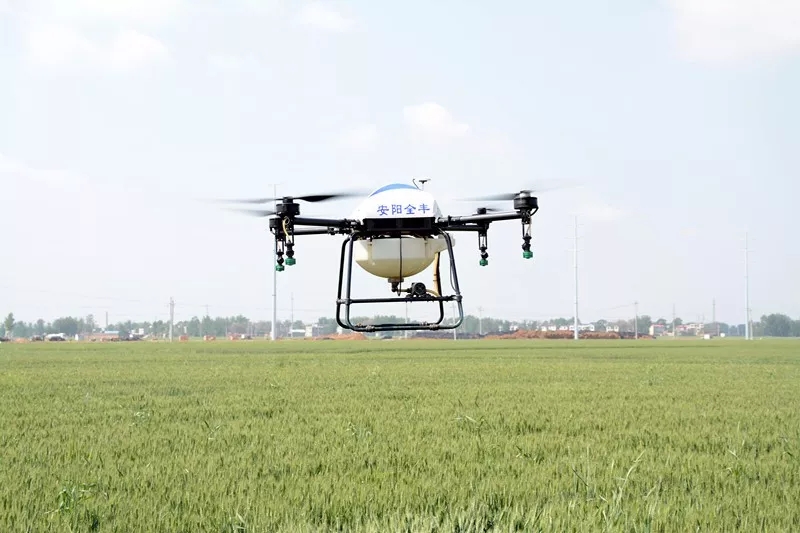 隨后,一行人來到作業(yè)現(xiàn)場,正在進(jìn)行飛防作業(yè)的隊(duì)員們接受領(lǐng)導(dǎo)和專家的檢閱。綠油油的麥田上空,全豐自由鷹和全球鷹同時起飛,可實(shí)行自主飛行,精準(zhǔn)噴灑,支持遙控器手機(jī)規(guī)劃航線,多種踩點(diǎn)方式!