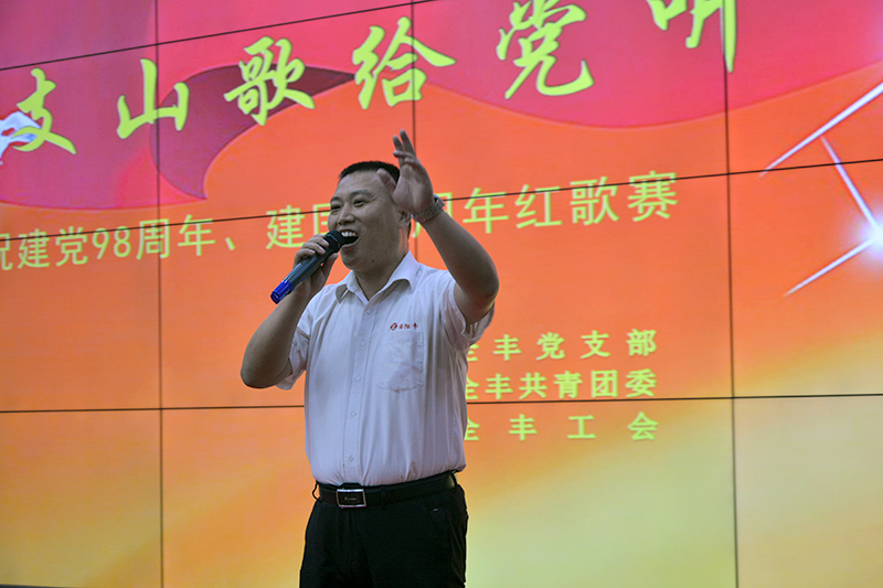 總結(jié)表彰會(huì)結(jié)束后,在全體人員高唱國歌《義勇軍進(jìn)行曲》的嘹亮歌聲中,慶祝建黨九十八周年紅歌賽拉開了下半場的序幕。此次紅歌賽分為集體賽和個(gè)人賽,共有七支參賽隊(duì)伍和四名獨(dú)唱分別角逐一二三等獎(jiǎng)。從歌曲內(nèi)容、服裝隊(duì)形、演唱水平等方面進(jìn)行綜合評(píng)比打分。經(jīng)過激烈角逐,制劑分公司合唱《保衛(wèi)黃河》榮獲集體一等獎(jiǎng),航空和原藥分獲二三等獎(jiǎng)。制劑分公司袁明演唱的《祖國慈祥的母親》榮獲個(gè)人賽第 一名,仝慧和周俊峰分獲二三名。